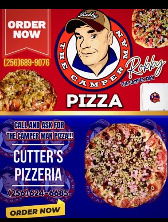 I have my own Signature Pizza from Cutters Pizzeria, I'm on the online menu you can order a Camperman Pizza 'Made with love' from Cutters pizzeria in Oxford and Alexandria Al.